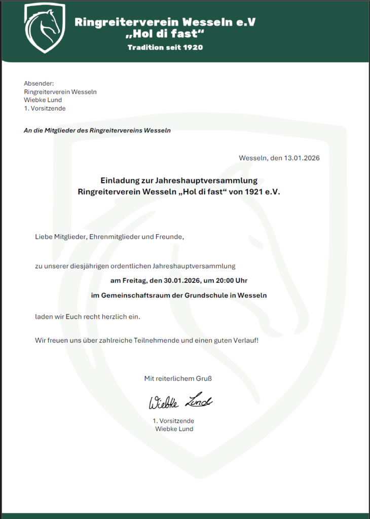 | 20:00 Uhr Reiterversammlung (Gemeinschaftsraum) | 1779480000 22/05/2026 | |